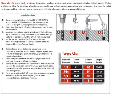 1/2 X 8-1/2" Heavy Duty | Steel Wedge Anchors | Zinc Plated | Box 20
